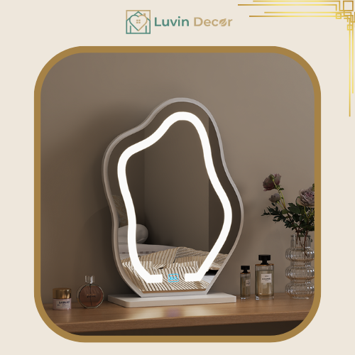 Phù hợp cho phòng ngủ nhỏ, kiểu dáng tối giản, có đèn LED giúp phản chiếu ánh sáng mềm, tạo cảm giác ấm áp và sang.